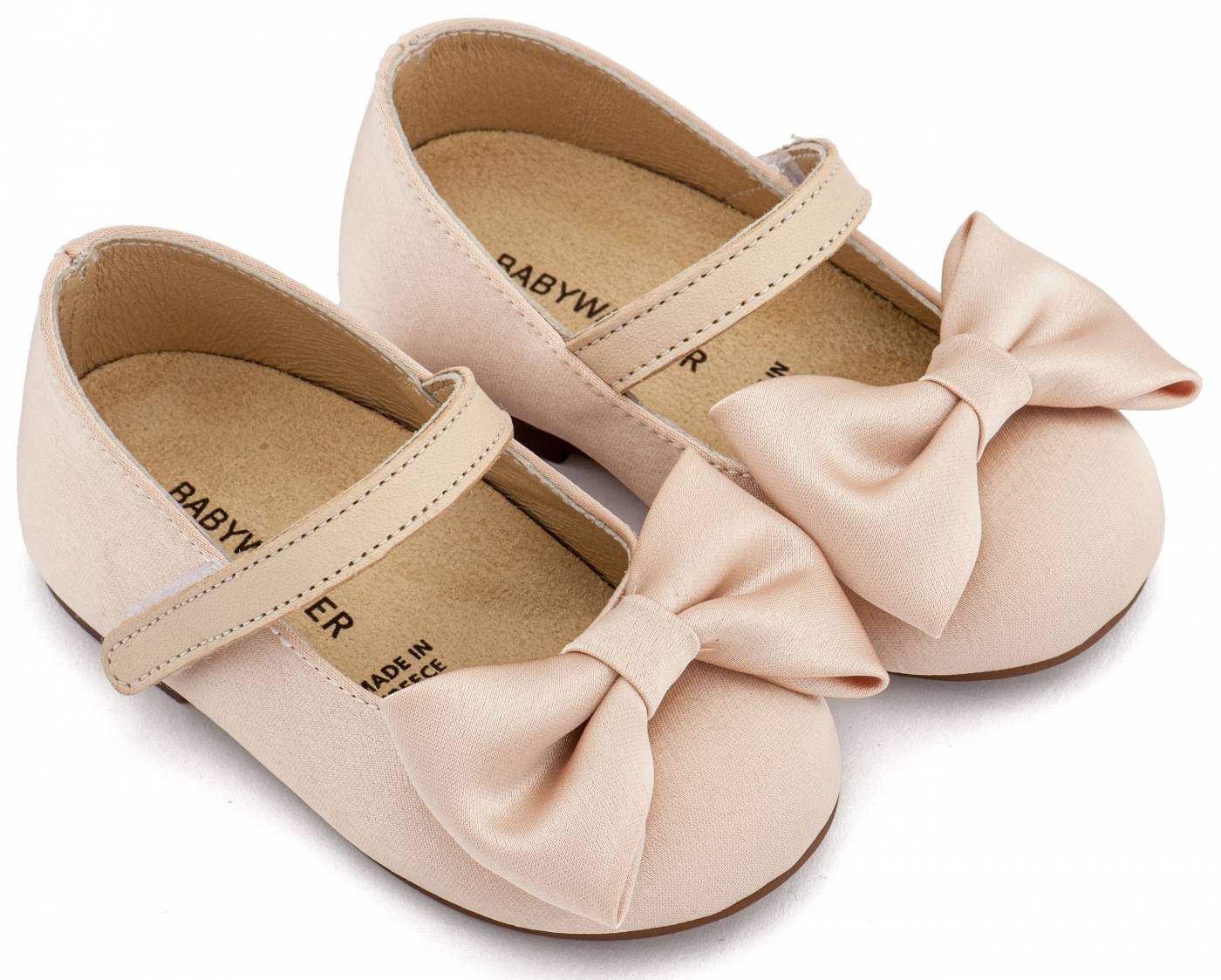 Υφασμάτινο Γοβάκι Μονή Μπαρέτα Χρατς με Σατέν Χειροποίητο Φιογκο σε Μπεζ Χρώμα