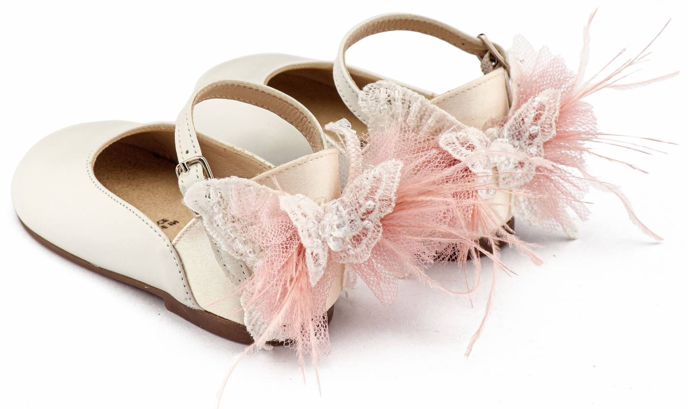 Γαλλικό Γοβάκι με Διακοσμημένη Φτέρνα Πεταλούδα BW4891 Εκρού Ροζ