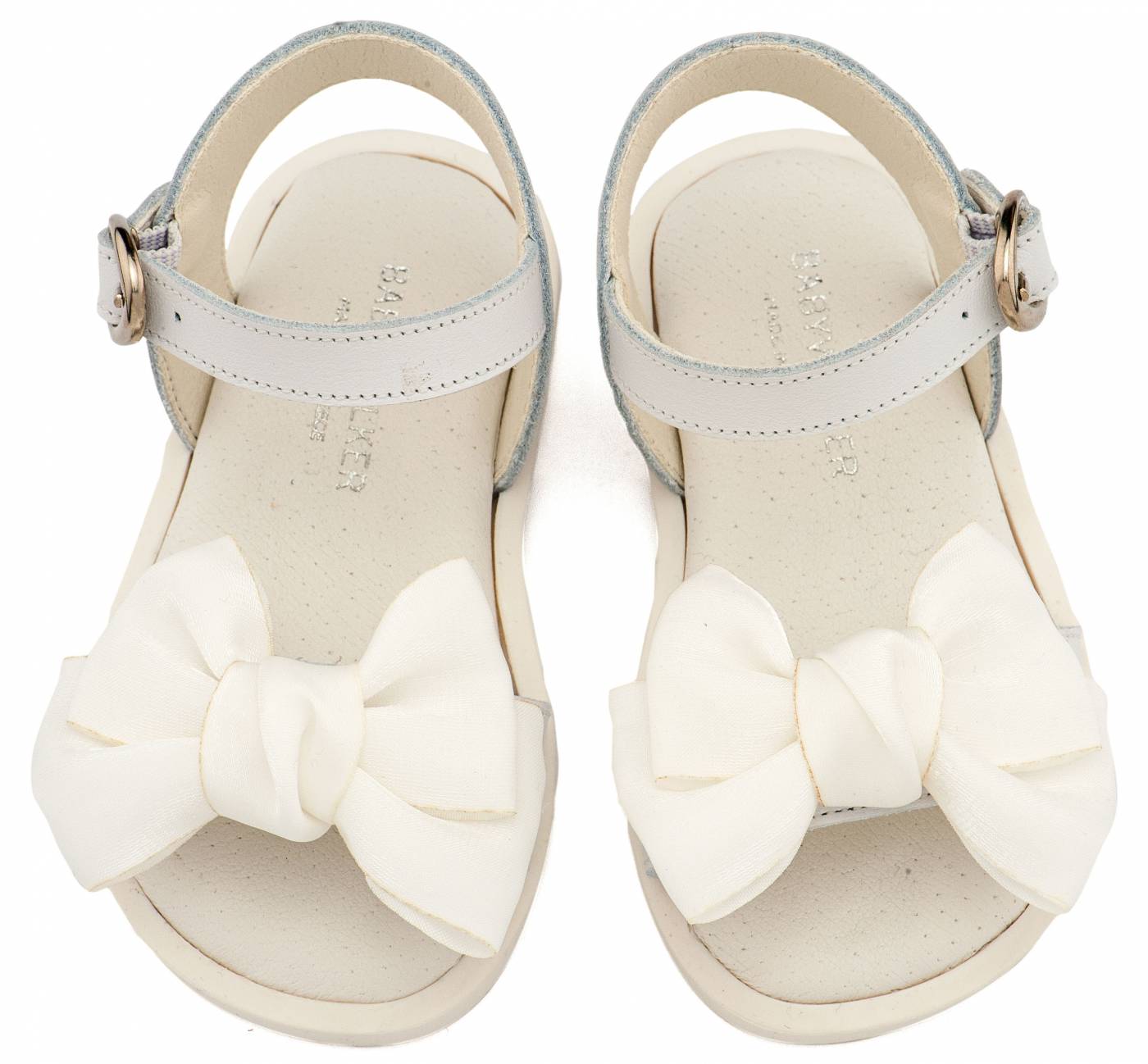 Δερμάτινο Πέδιλο Διακοσμημένο με Χειροποίητο Φιόγκο Οργάντζας και Πέρλες σε Λευκό Χρώμα