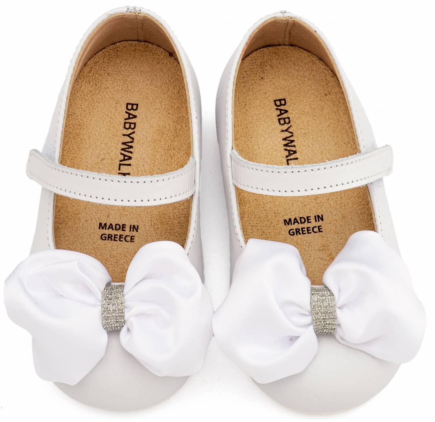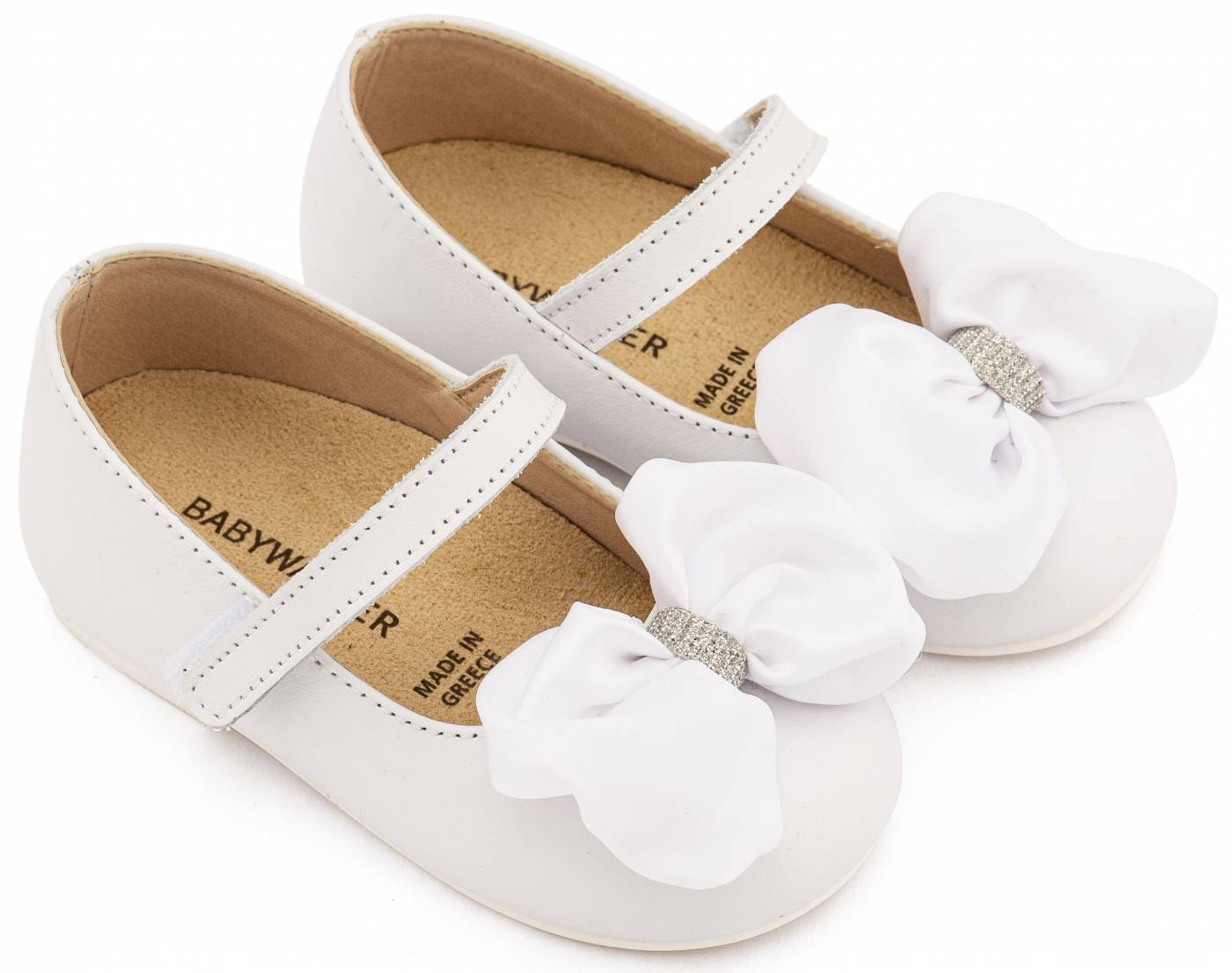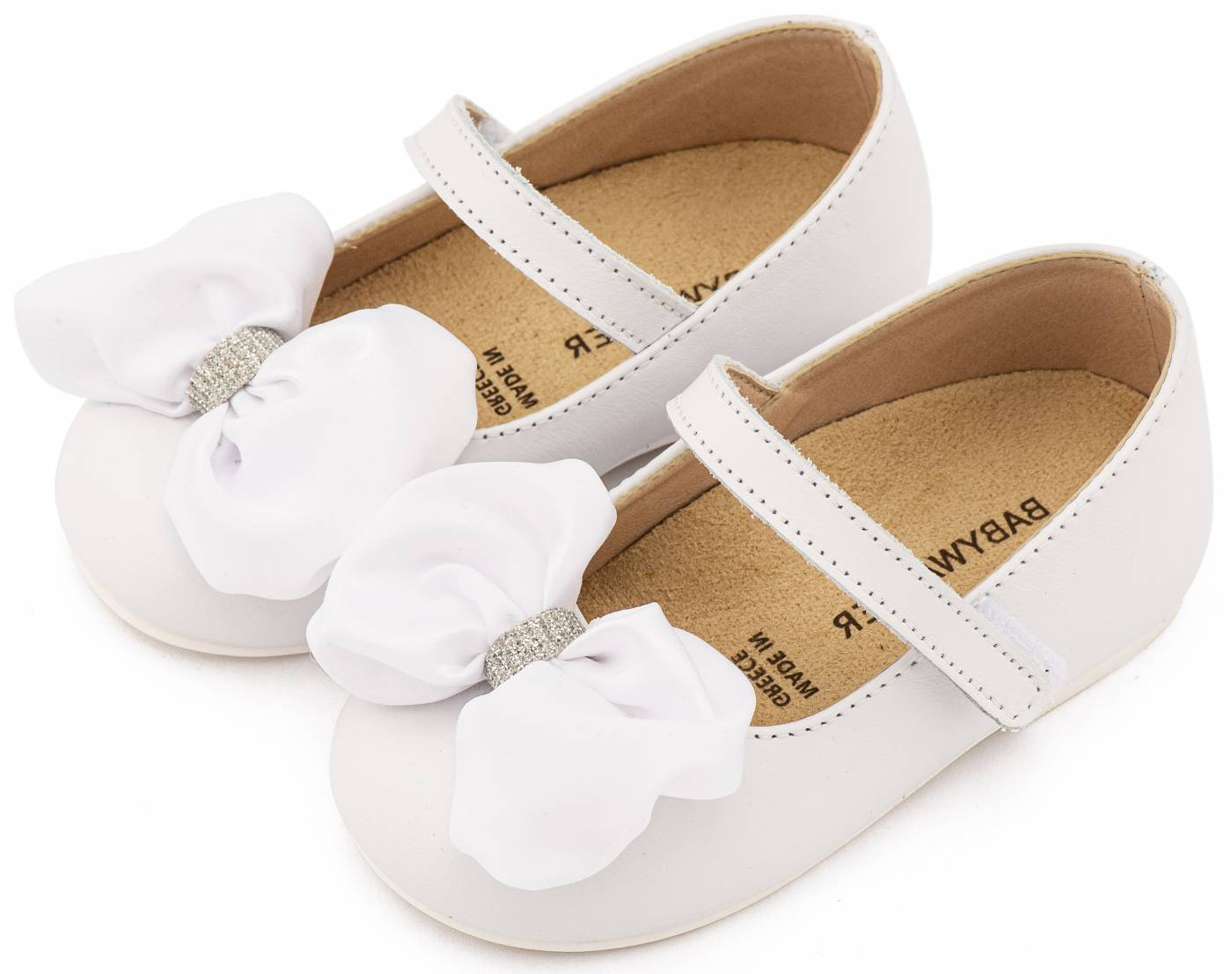 ΠΑΠΟΥΤΣΑΚΙΑ BABYWALKER Δερμάτινο Γοβάκι Μονή Μπαρέτα Χρατς με Σατέν Χειροποίητο Φιόγκο σε Λευκό Χρώμα
