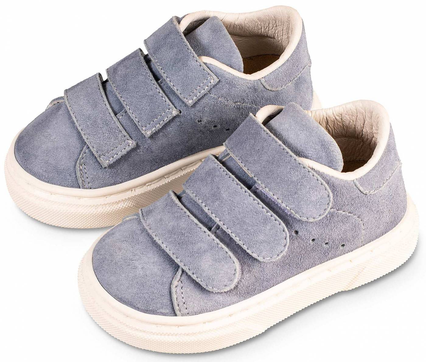 Δερμάτινο Mονόχρωμο Σνίκερ με Τριπλή Μπαρέτα Χρατς από Δέρμα Suede σε Σιέλ Χρώμα