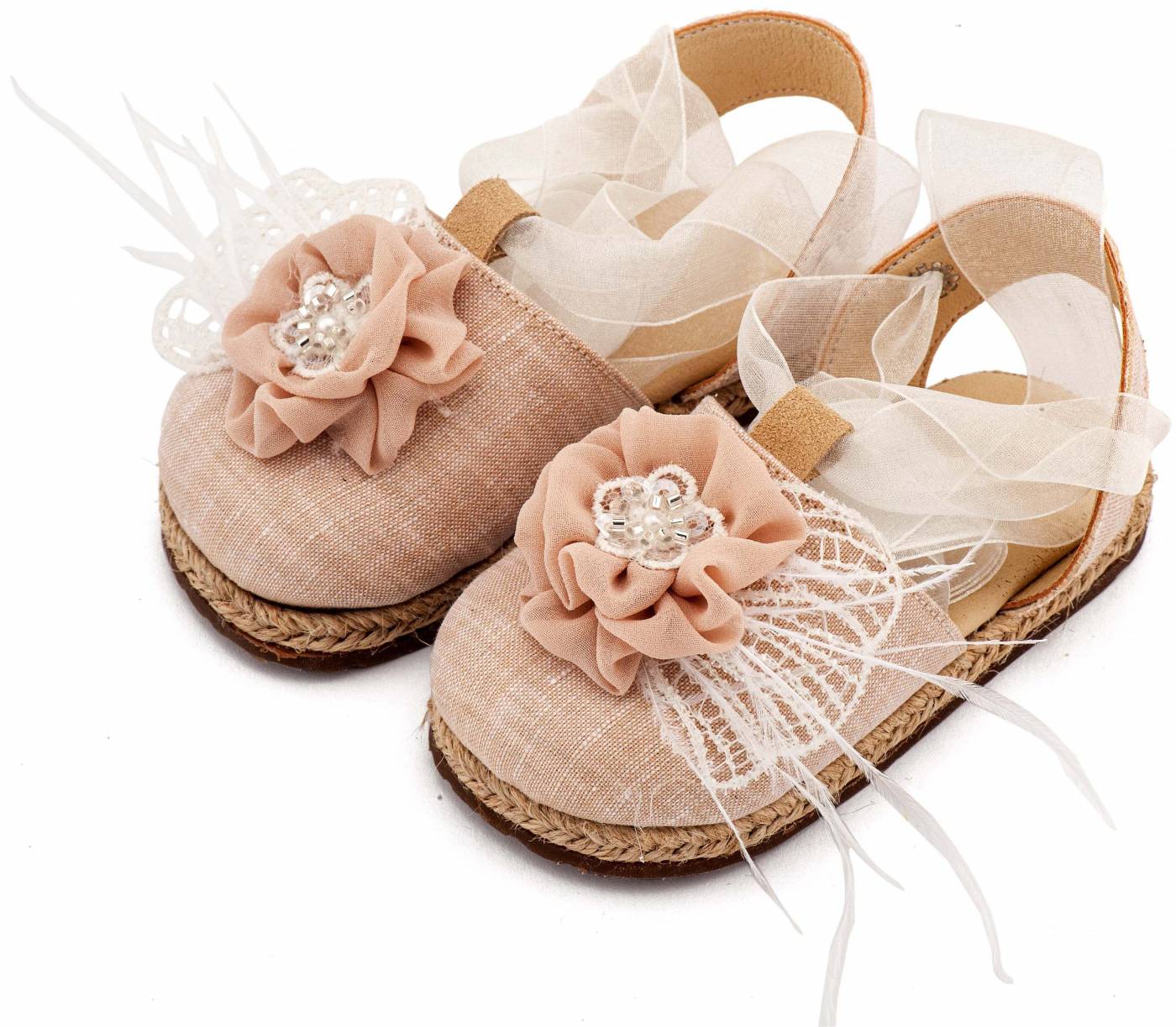 Εσπαντρίγια με Χειροποίητο Διακοσμητικό με Πούπουλα EXC5905 εκρού