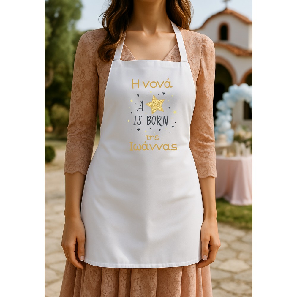 Ποδιά βάπτισης απο βαμβακερό ύφασμα ,τυπωμένη με θέμα αστέρι .