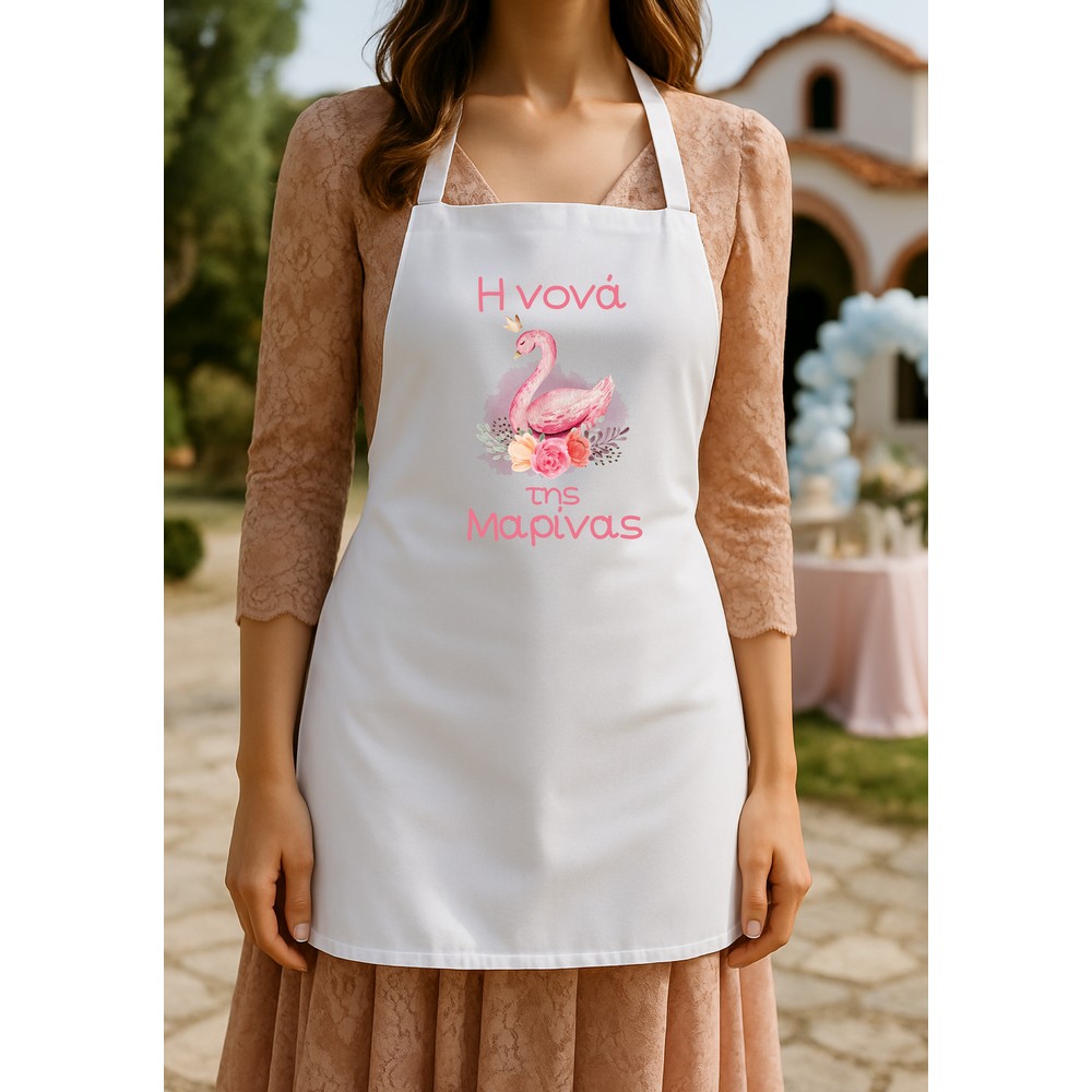 Ποδιά βάπτισης απο βαμβακερό ύφασμα ,τυπωμένη με θέμα κύκνο .