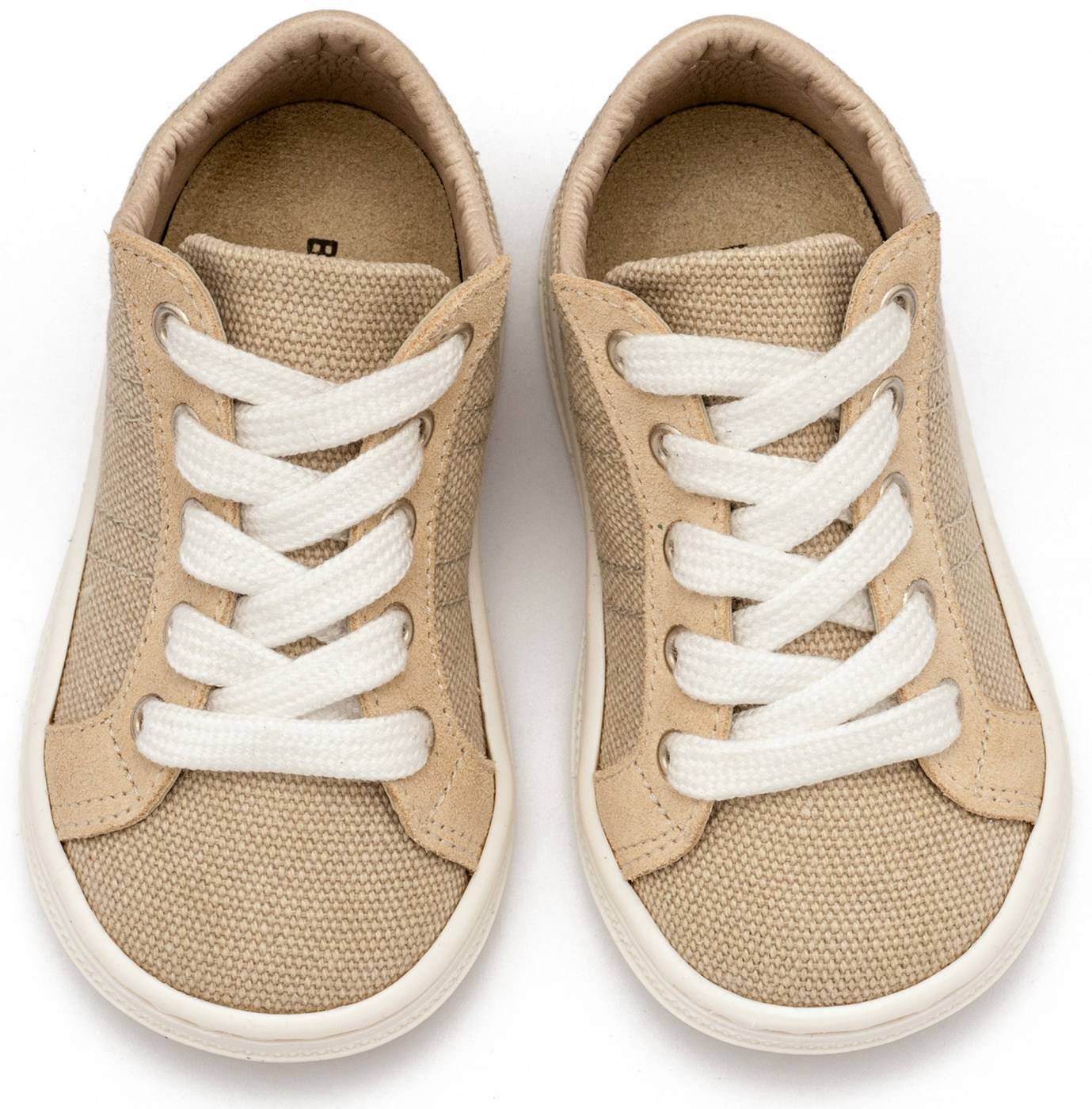 Δίχρωμα Υφασμάτινα Δετά Σνίκερ από Ύφασμα και Δέρμα σε Μπεζ Χρώμα