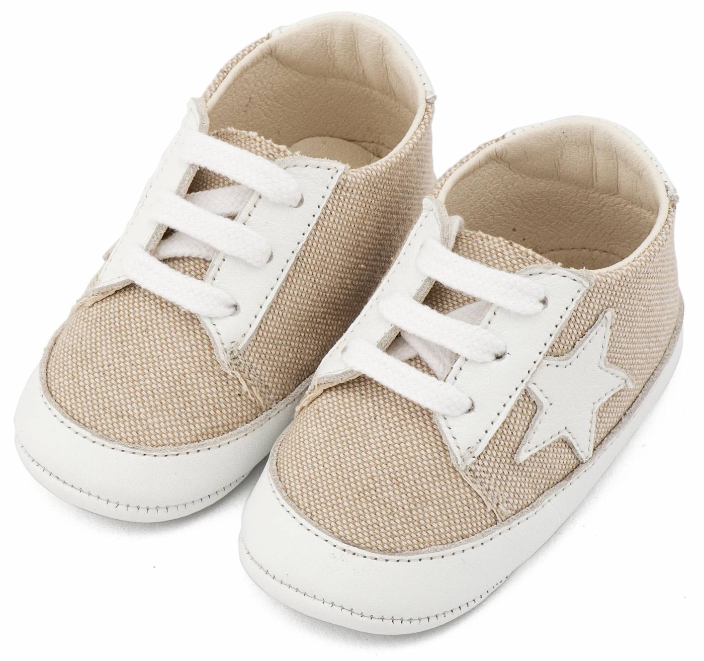 Υφασμάτινο Δετό Sneaker με Δέρμα και Αστέρι στο Πλάι σε Μπεζ Λευκό Χρώμα