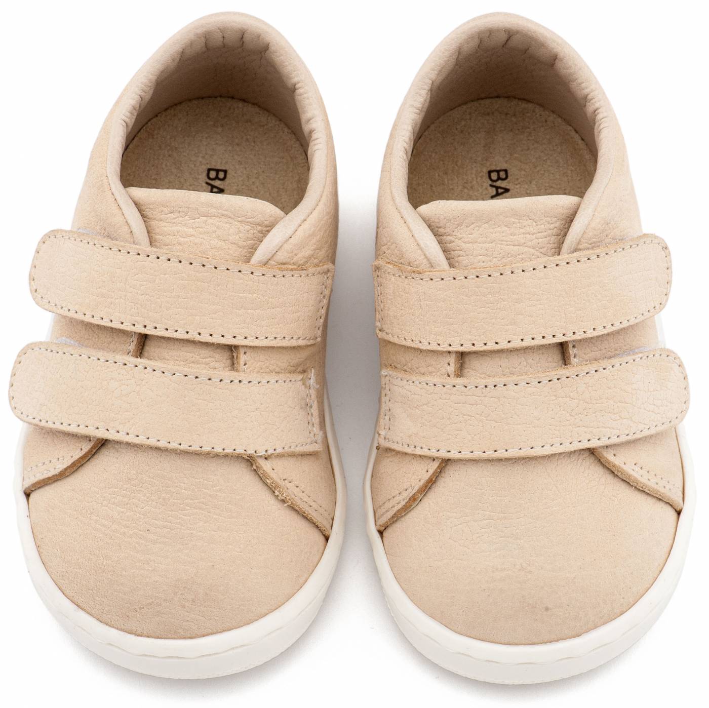Δερμάτινο Sneakers Διπλή Μπαρέτα Χρατς σε Μπεζ Χρώμα