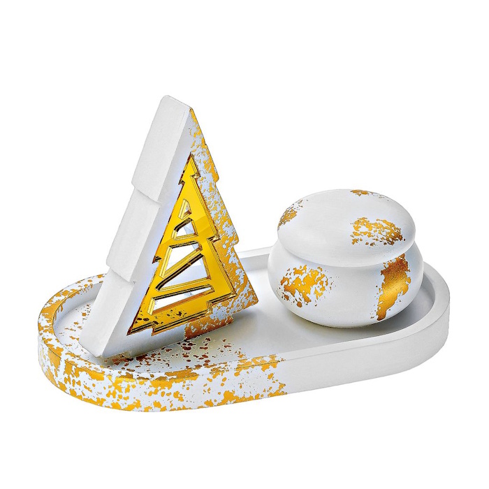 Ενα μοναδικο γιορτινο σετ αποτελούμενο απο 3 τεμαχια κεραμικά .Μια μπιζουτίερα κεραμική ,ένα κεραμικό δεντάκι με πλέξι κλάς στοιχεια και δίσκος κεραμικός με τεχνοτροπία στη βαφή .
