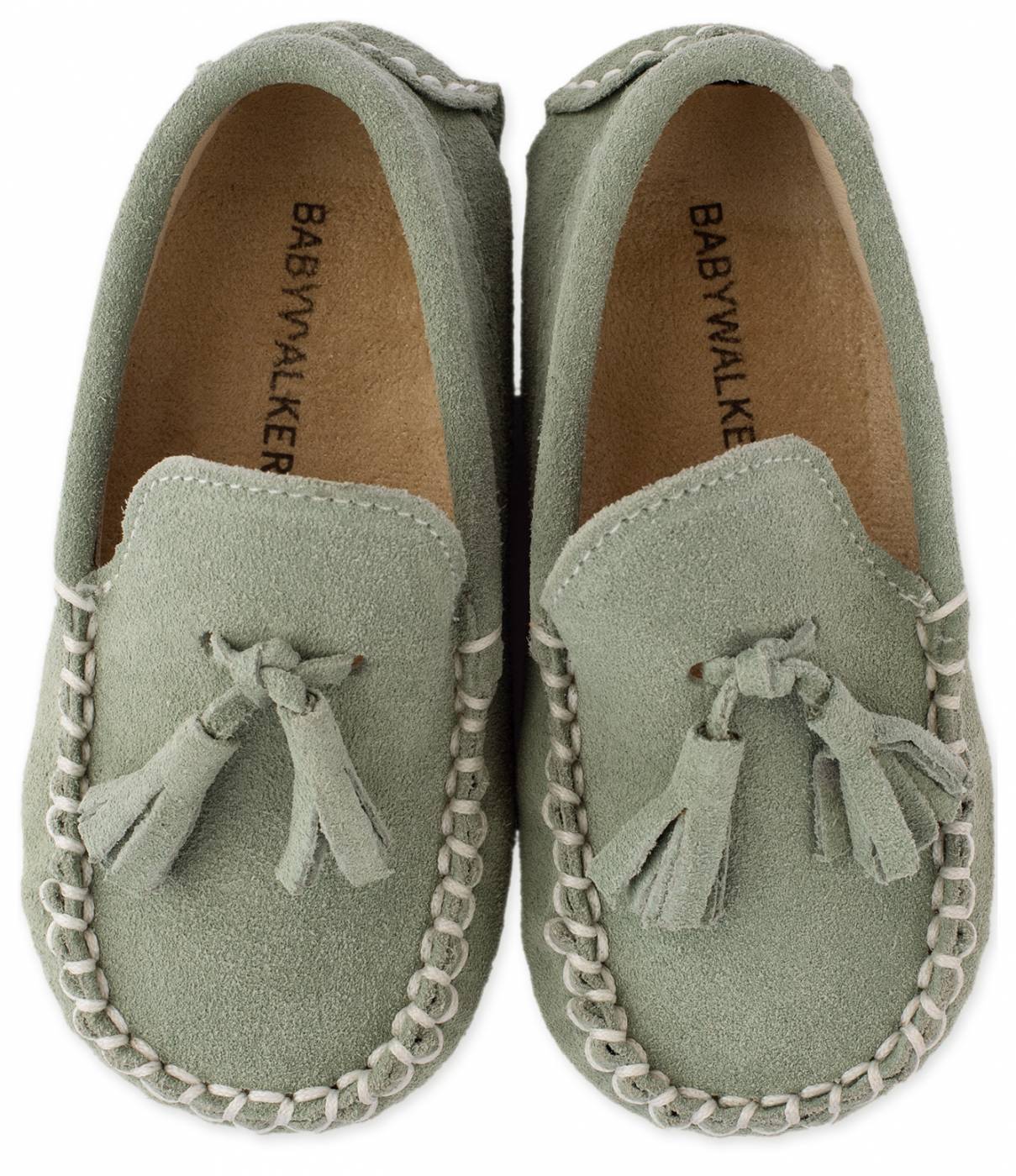 Καστόρινο Μοκασίνι με Φουντάκια από Δέρμα Κρούτα Suede σε Μέντα Χρώμα